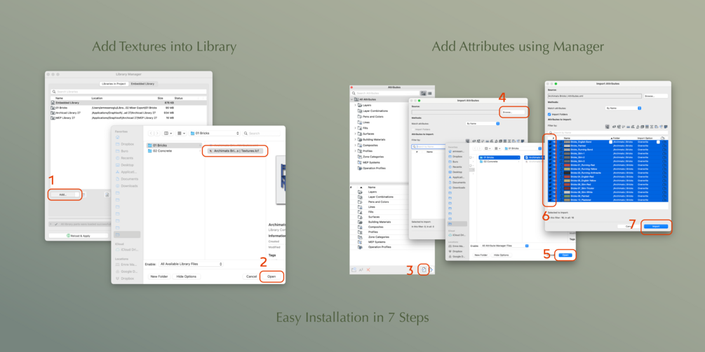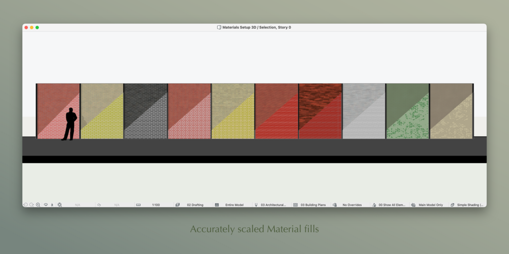There's plenty of textures out there - but none that is specifically created for Archicad users. The textures have a hight level of polish, come in various quality presets while ensuring usability with external rendering software as well. Perhaps the best feature of it all: the materials come with 2d hatches to match the 3d texture. Just install the files according to the instructions provided and you will be on your way to creating stunning looking Archicad models.