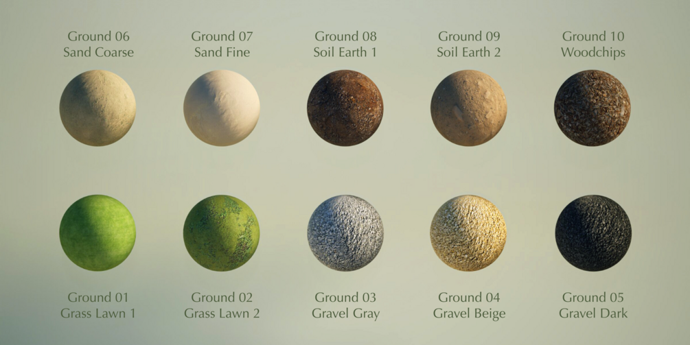 10 render-ready, seamless and carefully handcrafted ground materials for your Archicad models: these materials will look great while you design in Archicad. Whether it is for BIMx models, in app presentations or sending to other rendering apps, the pack will instantly turn your models into eye candy. The textures are accurately sized, so you don't have to worry about the scaling. Each material comes with color, normal, reflection, displacement and opacity maps configured, so you can even use them for renders inside Archicad using the Redshift or Cineware renderers.