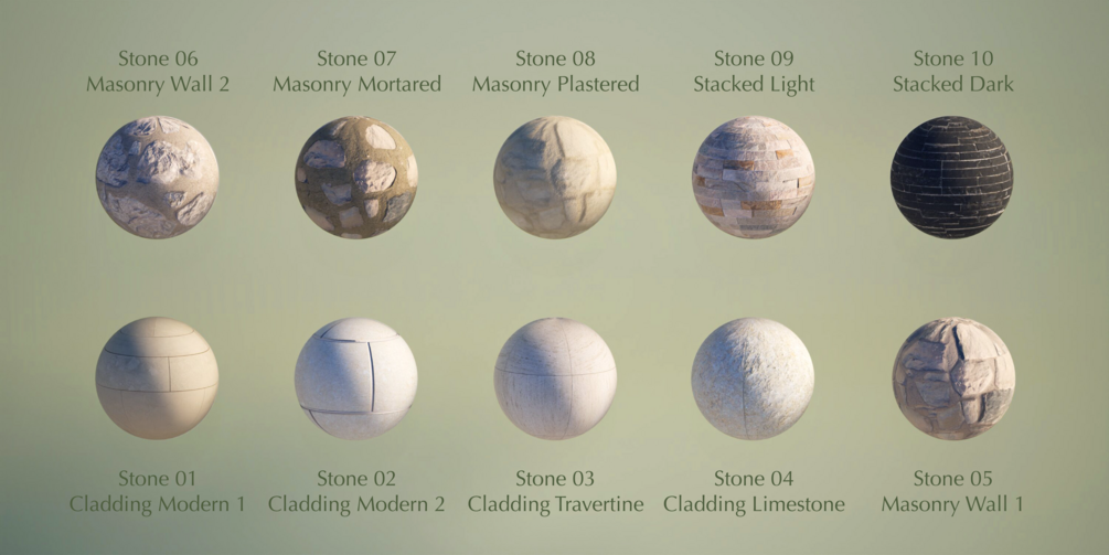 10 render-ready, seamless and carefully handcrafted stone materials for your Archicad models: these materials will look great while you design in Archicad. Whether it is for BIMx models, in app presentations or sending to other rendering apps, the pack will instantly turn your models into eye candy. The textures are accurately sized, so you don't have to worry about the scaling. Each material comes with color, normal, reflection, displacement and opacity maps configured, so you can even use them for renders inside Archicad using the Redshift or Cineware renderers.