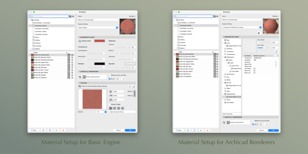 There's plenty of textures out there - but none that is specifically created for Archicad users. The textures have a hight level of polish, come in various quality presets while ensuring usability with external rendering software as well. Perhaps the best feature of it all: the materials come with 2d hatches to match the 3d texture. Just install the files according to the instructions provided and you will be on your way to creating stunning looking Archicad models.